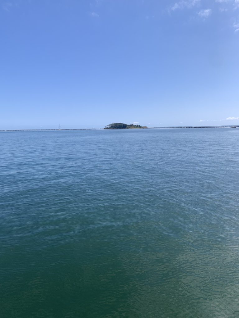 The Thimble islands were highly recommended to us so we decided to anchor there on our way up. Still in Connecticut, they are a picturesque archipelago of little islands formed out of pink granite, some of which have beautiful (and very large) historic houses on them. We anchored inbetween a few of them and then decided to dinghy into the mainland for some dinner. Finding a spot to park our dinghy was a bit of an endeavour. There weren’t any clearly listed dinghy landings so we tied up somewhere that we were maybe not supposed to and hoped for the best. There was only one place to eat and they didn’t take card but let us venmo them for pizza! When I asked if we could buy a glass of wine they said they were BYOB and told us where to buy wine. This was nowhere near walking distance so I bought some lemonades instead. A little while later the owner came out with a bottle of wine that she kept as a backup for poor folk like us who showed up without their own bottle. This one place to eat that we thought we wouldn’t be able to eat at ended up being quite a win with very friendly people and the pizza was great to top it off!