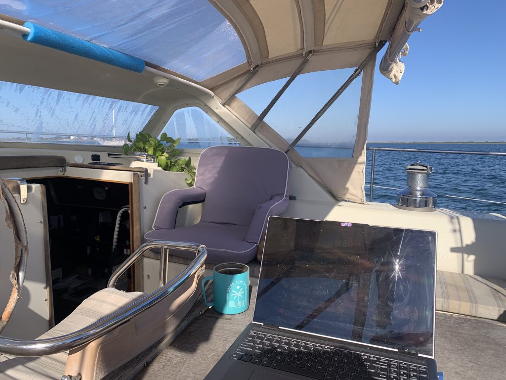 Block Island was the first place we got to where it cooled down enough to be able to start to do work in the cockpit. My favourite place to work from! One morning I was sitting out there doing work and there was a knock on the hull that came with an invite to one of the other two boats in the anchorage that evening for snack and drinks. We had been admiring their Aluminium hull boat so we were excited to go see it. Brian and Helen on SV Helacious built the boat in their back yard (with Brian’s welding background coming in handy) and ended up doing the Viking route (crossing the Atlantic by way of Iceland and Greenland to Canada)! This was definitely a high latitudes type of boat.